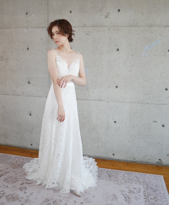 大きくあいたバックスタイルも女性らしさを強調してくれ、360度オシャレなドレスなので、前撮りや二次会にもおすすめです。
